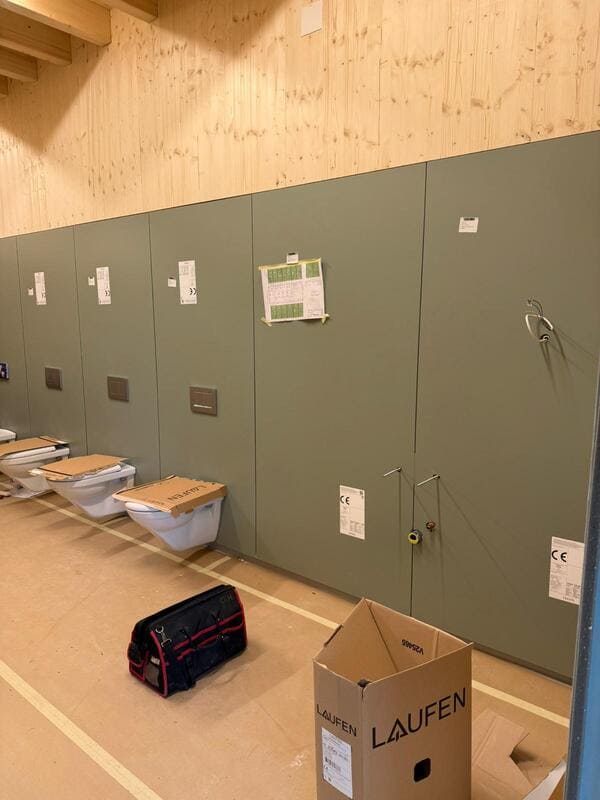 Der Neubau besteht hauptsächlich aus lokalem Fichtenholz. Um den Aufbau kümmerte sich eine Toggenburger Firma. Generell hat die Baukommission versucht, die Aufträge möglichst lokal zu vergeben. Denn das Bauprojekt wird mit Steuergeldern der vier Partnergemeinden finanziert. Frei sagt: «Entsprechend mussten die grösseren Vergaben öffentlich ausgeschrieben und nach den ‹Spielregeln› des öffentlichen Beschaffungswesens vergeben werden.» Auch habe sich gezeigt, dass viele lokale Unternehmen bereits mit anderen Aufträgen ausgelastet sind.
