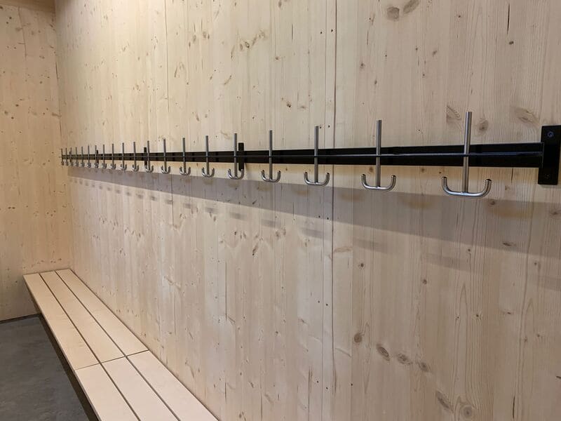 Hier lässt sich bereits die grosse Garderobe mit einzelnen Umkleidekabinen erahnen. Etwas weiter hinten befindet sich der Techniktrakt, dort sollen einige Softrenovationen erfolgen. In den nächsten zehn bis fünfzehn Jahren plant die Genossenschaft, kontinuierlich Teile der Technik zu erneuern. «Hätten wir das gleichzeitig mit dem Umbau gemacht, hätte das den Kostenrahmen gesprengt», sagt Frei.