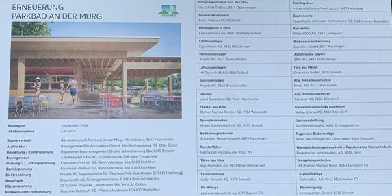 Die Bewohnerinnen und Bewohner der Partnergemeinden Münchwilen, Sirnach, Eschlikon und Fischingen sollten am 25. Oktober Gelegenheit erhalten, sich ausführlich über den Neubau Hochbauten Parkbad an der Murg orientieren zu können, bevor sie an den Budgetgemeinde-Versammlungen ihrer Gemeinden über deren finanzielle Beteiligung abstimmen.